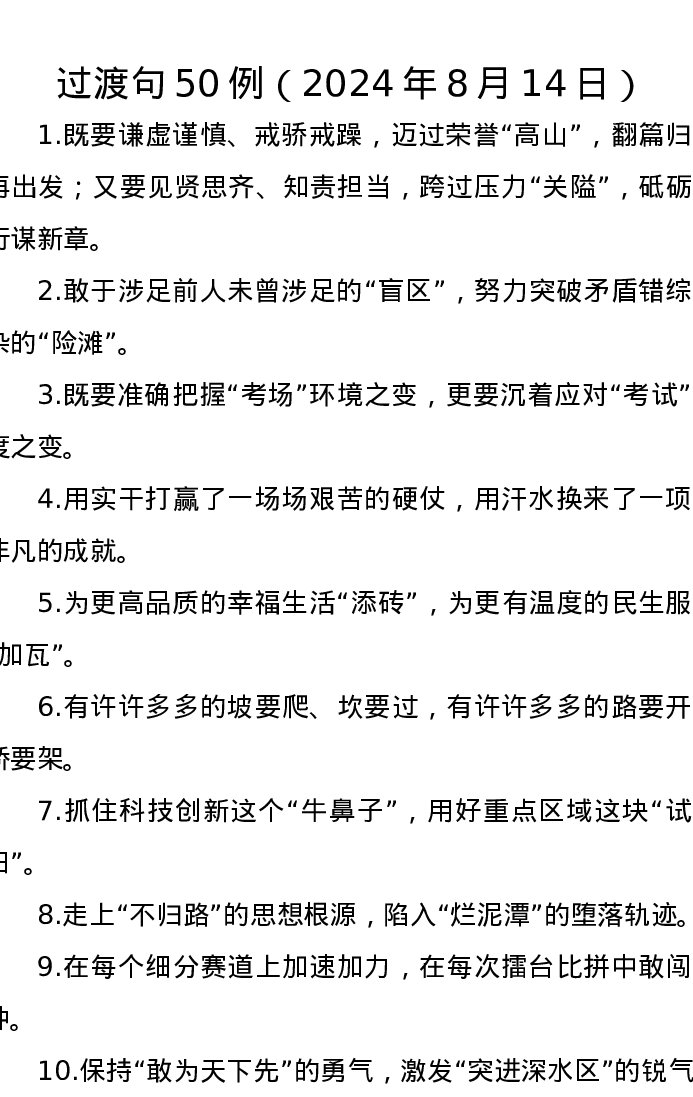 过渡句50例(2024年8月14日)
