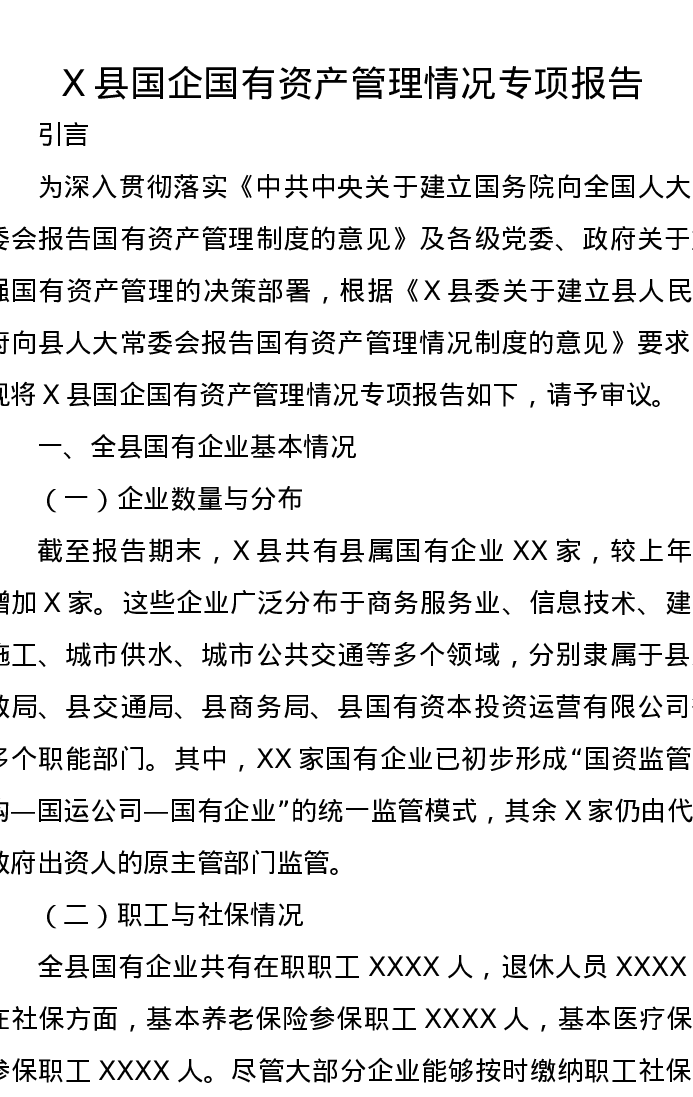 X县国企国有资产管理情况专项报告
