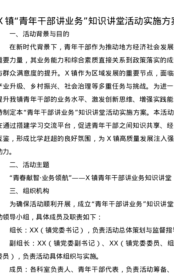 X镇“青年干部讲业务”知识讲堂活动实施方案