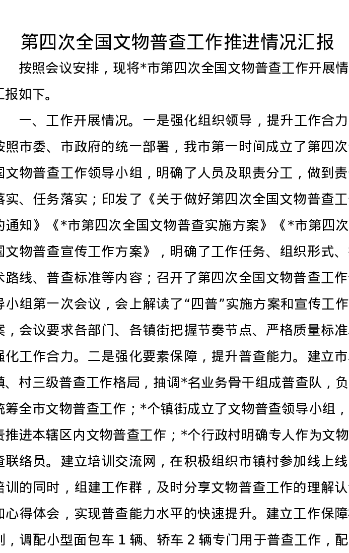 第四次全国文物普查工作推进情况汇报
