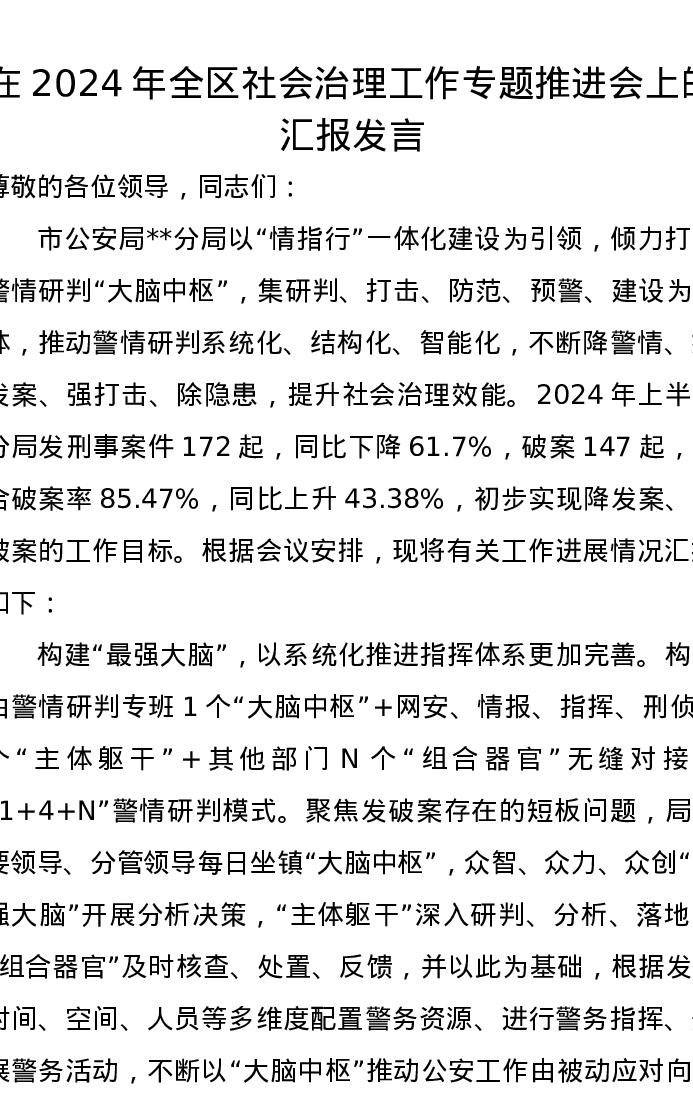 在2024年全区社会治理工作专题推进会上的汇报发言