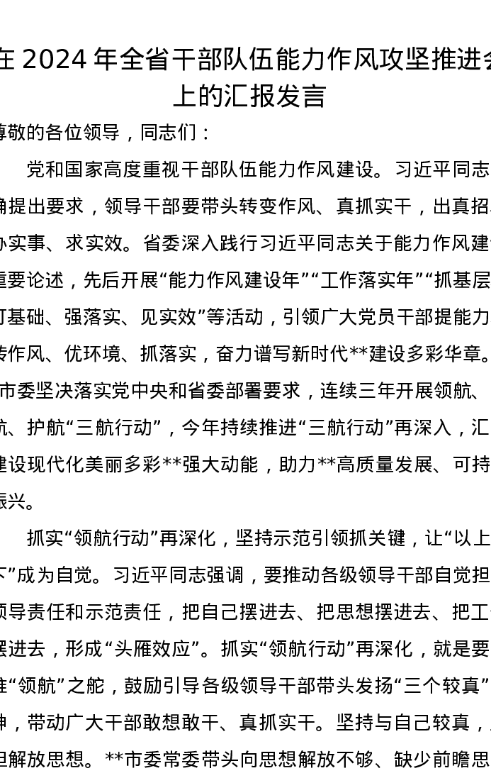 在2024年全省干部队伍能力作风攻坚推进会上的汇报发言