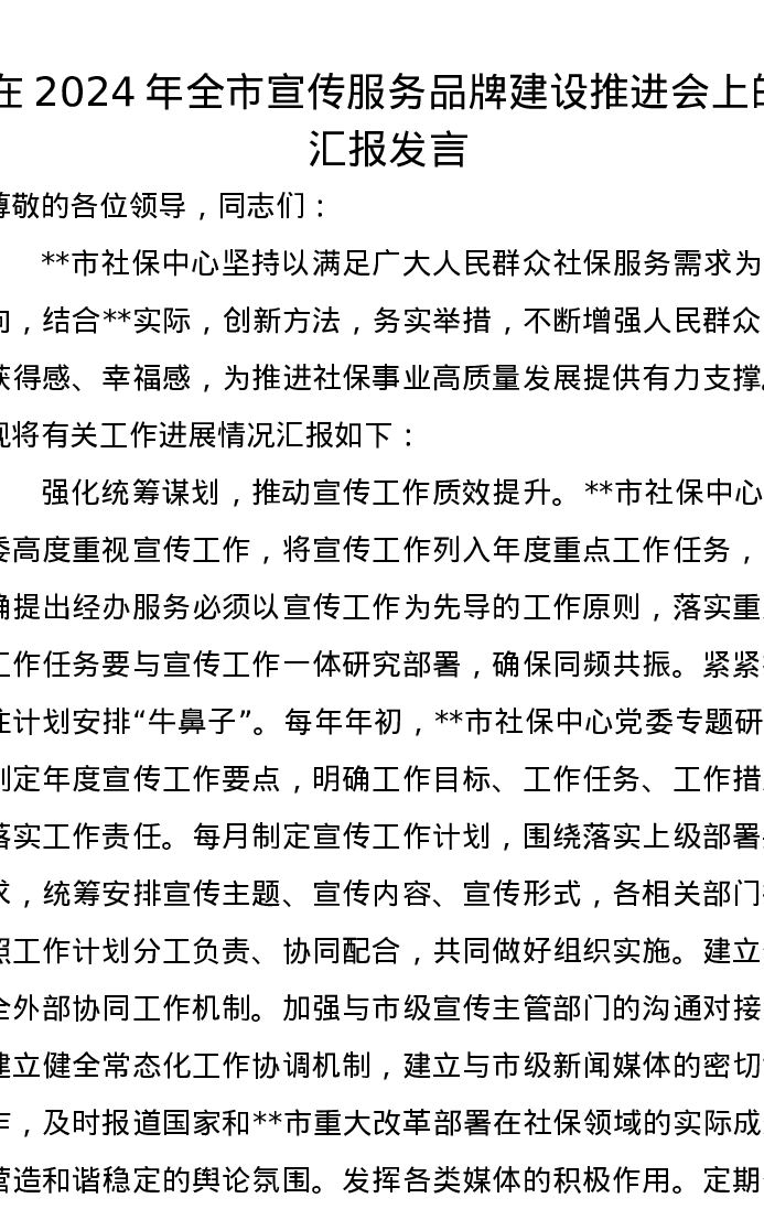 在2024年全市宣传服务品牌建设推进会上的汇报发言