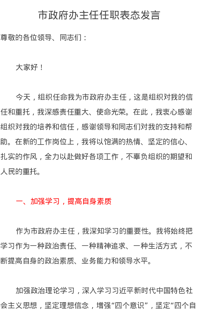 市政府办主任任职表态发言