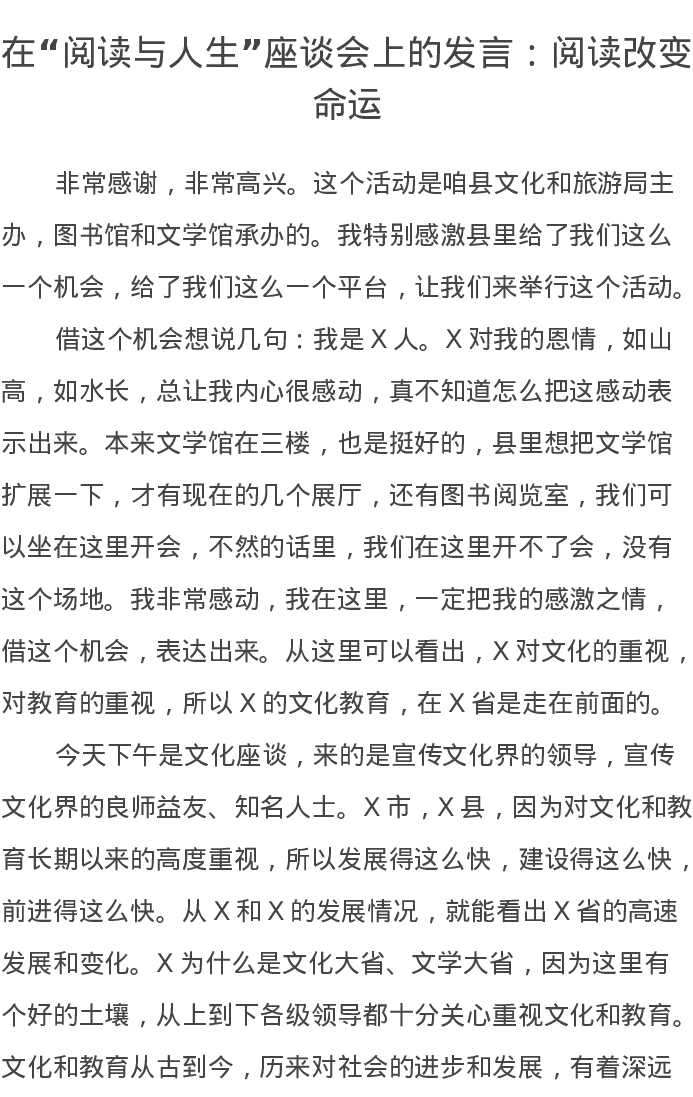在“阅读与人生”座谈会上的发言:阅读改变命运
