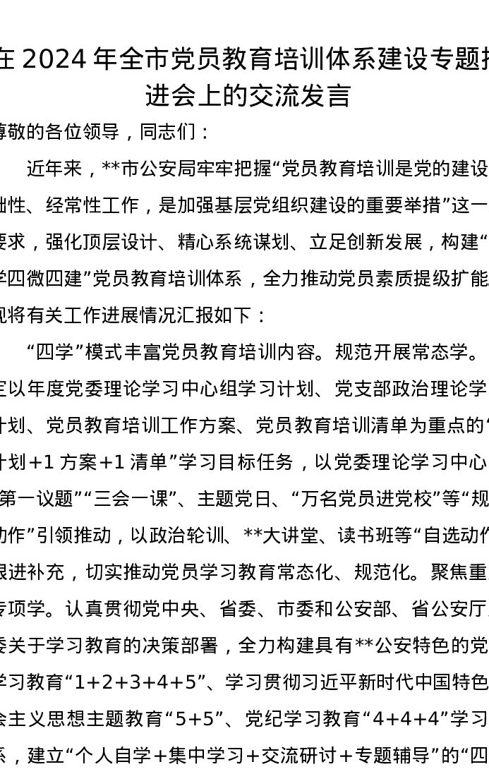 在2024年全市党员教育培训体系建设专题推进会上的交流发言