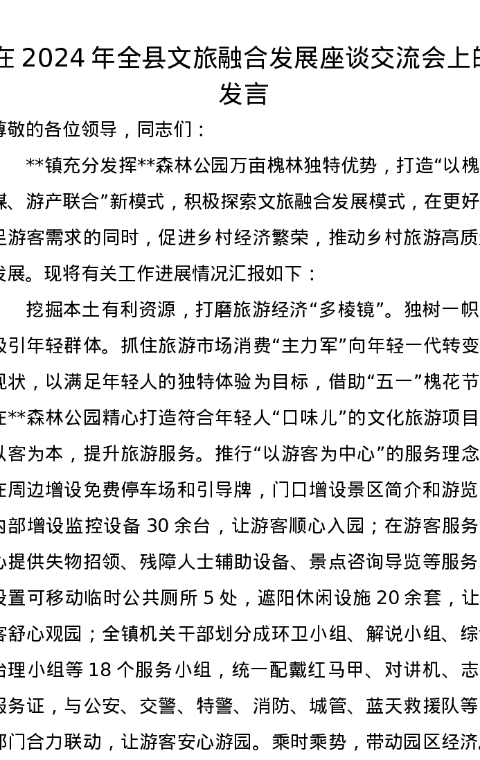 在2024年全县文旅融合发展座谈交流会上的发言
