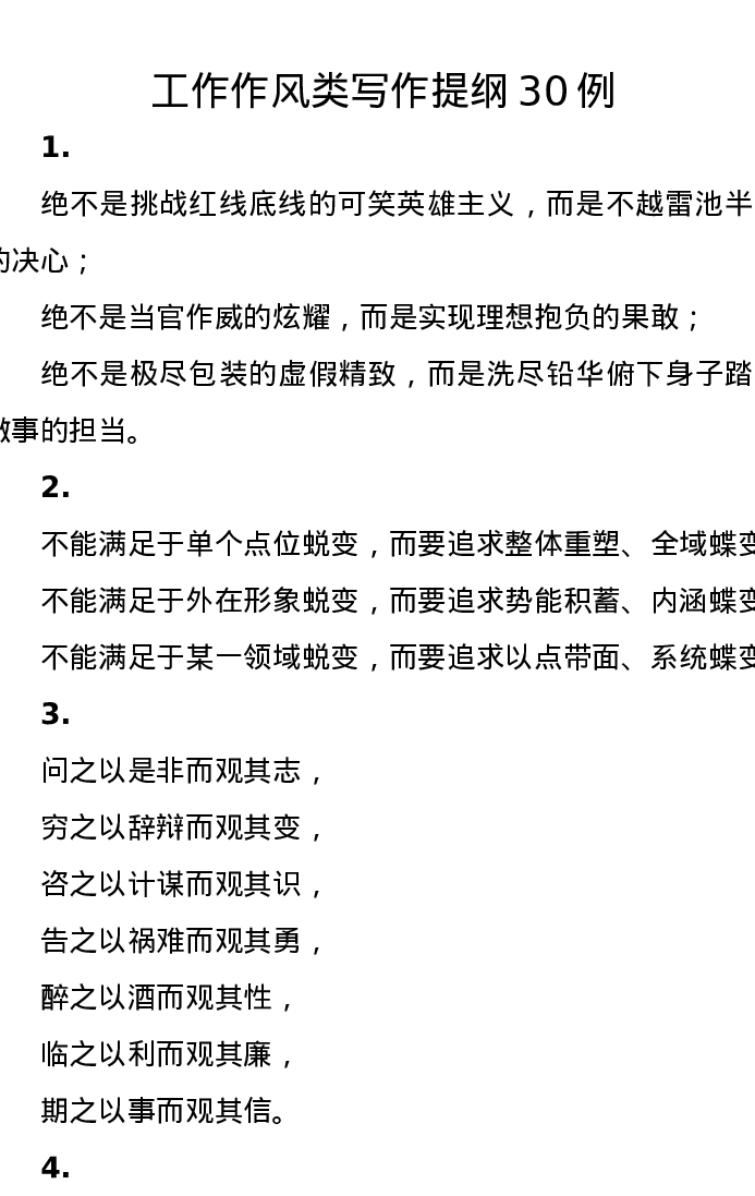 工作作风类写作提纲30例