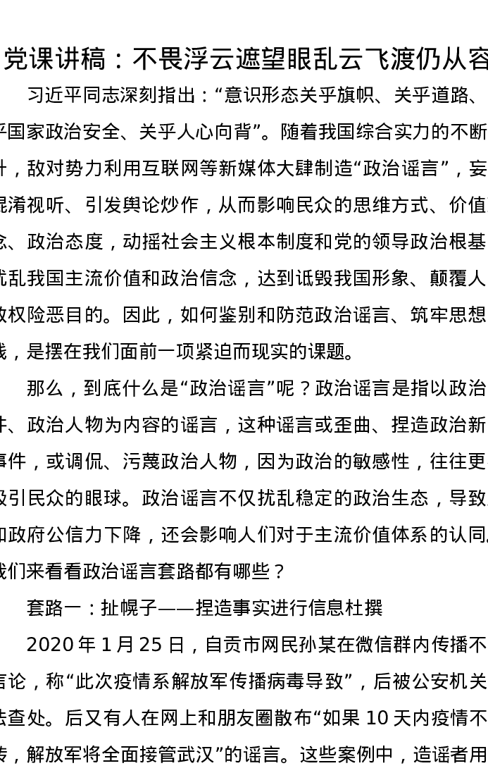 党课讲稿:不畏浮云遮望眼乱云飞渡仍从容