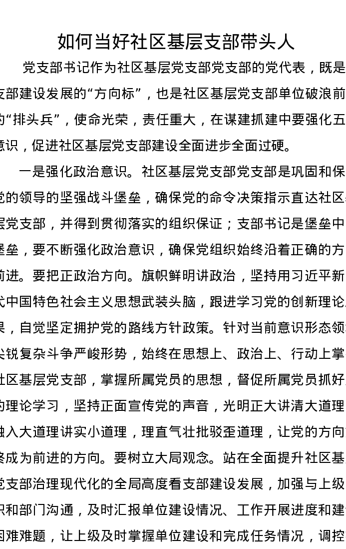 党课讲稿:如何当好社区基层支部带头人