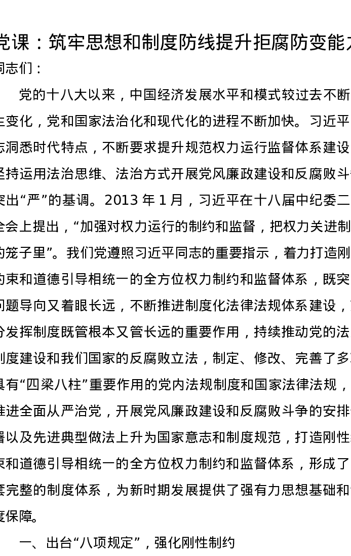 党课讲稿:筑牢思想和制度防线提升拒腐防变能力