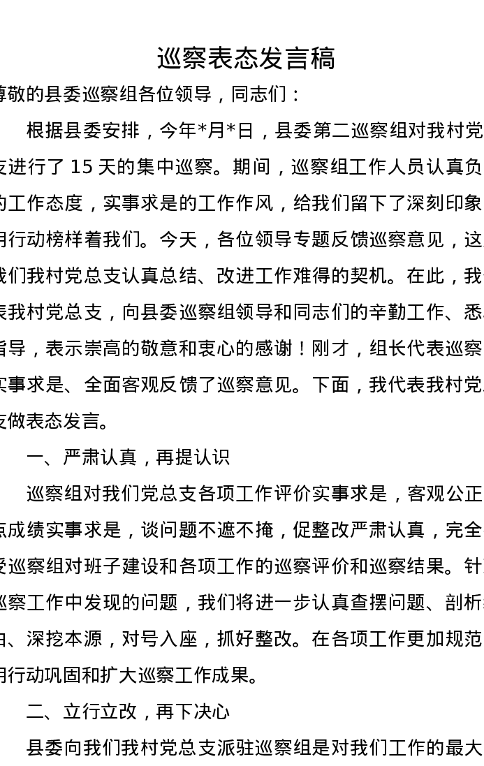 巡察表态发言稿