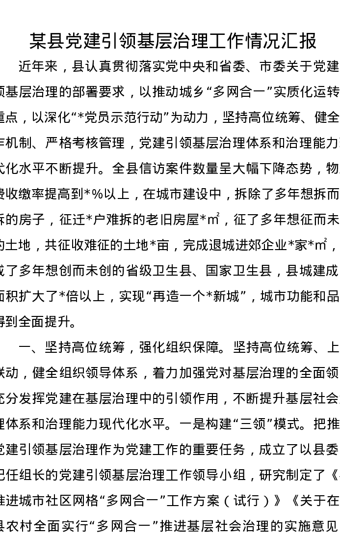 某县党建引领基层治理工作情况汇报