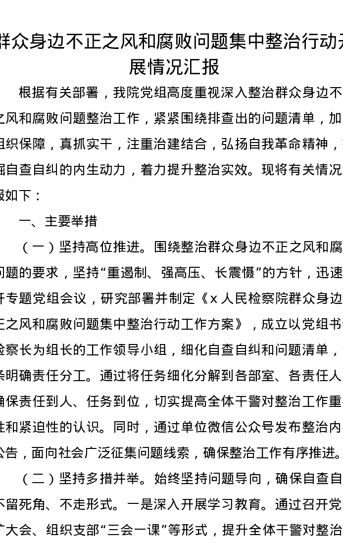 群众身边不正之风和腐败问题集中整治行动开展情况汇报