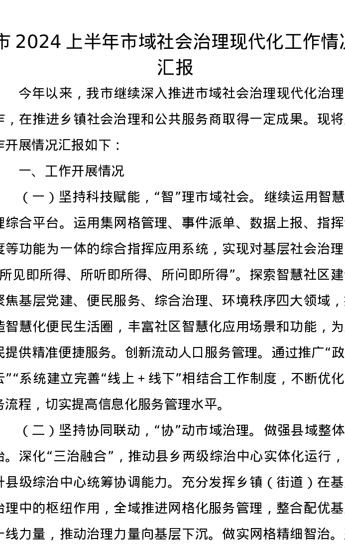 市2024上半年市域社会治理现代化工作情况汇报