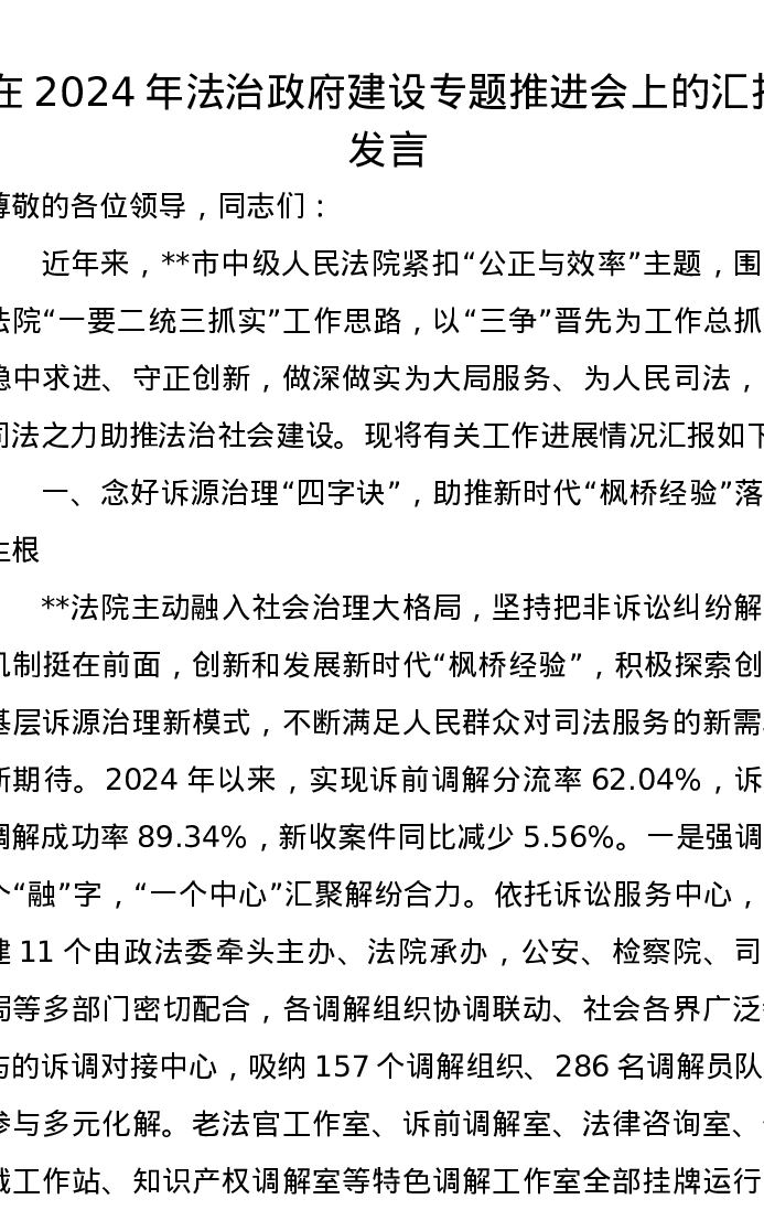 在2024年法治政府建设专题推进会上的汇报发言