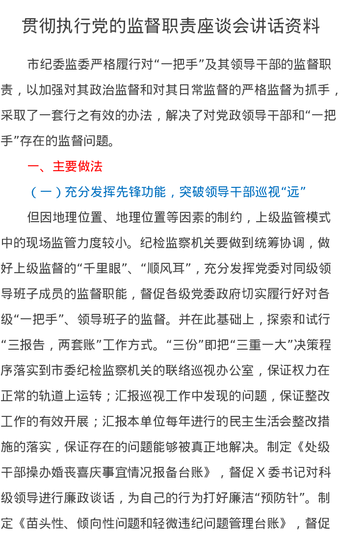 贯彻执行党的监督职责座谈会讲话资料