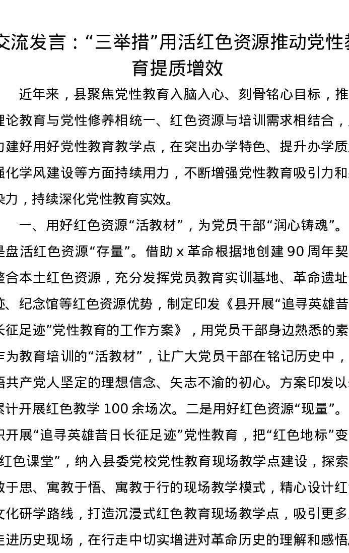 交流发言:“三举措”用活红色资源推动党性教育提质增效