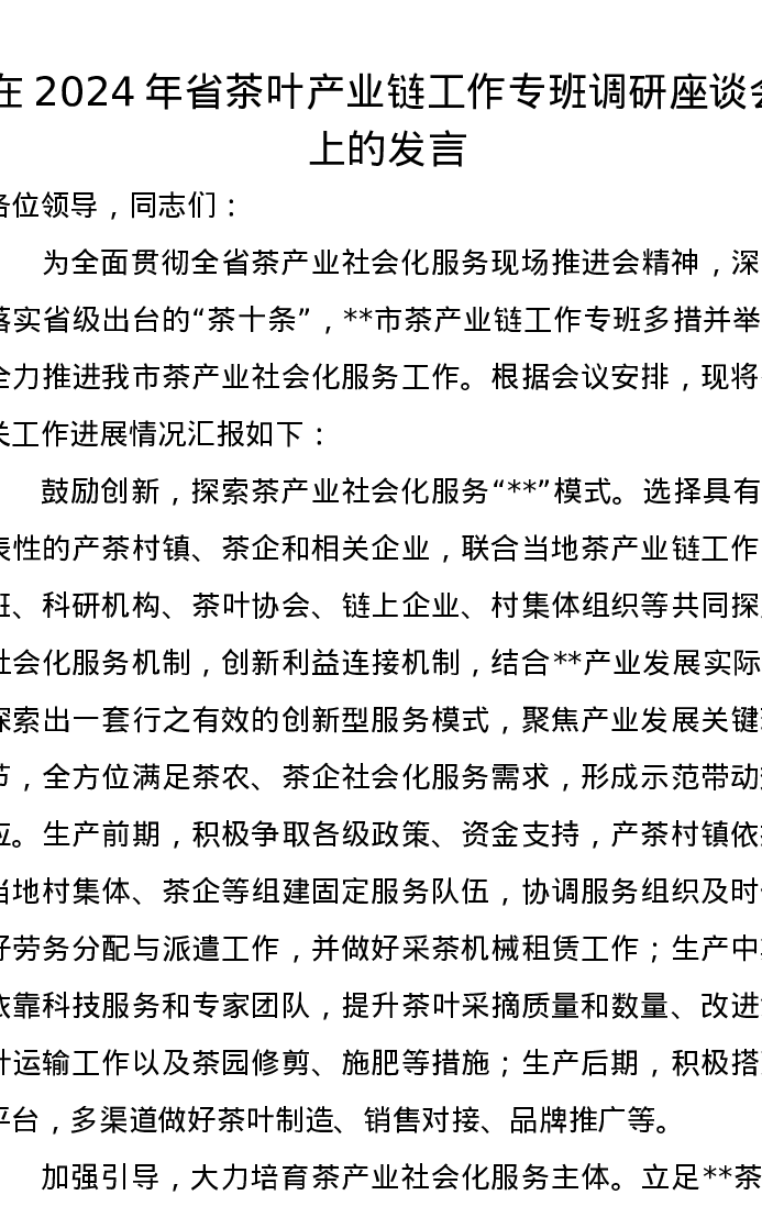 在2024年省茶叶产业链工作专班调研座谈会上的发言
