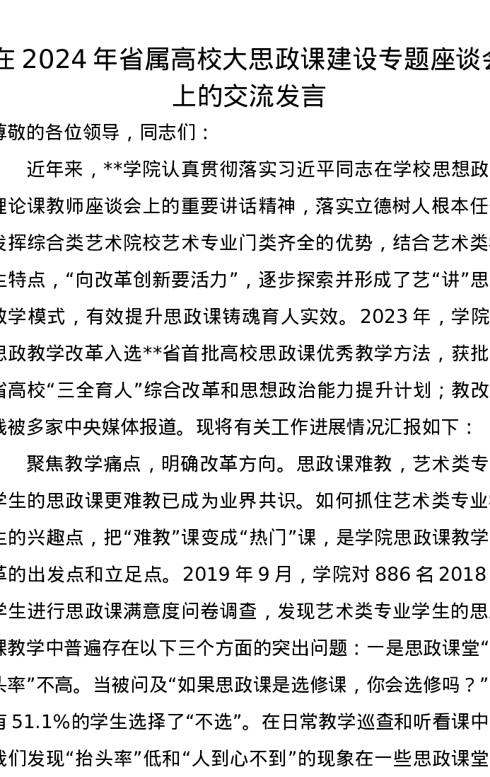 在2024年省属高校大思政课建设专题座谈会上的交流发言