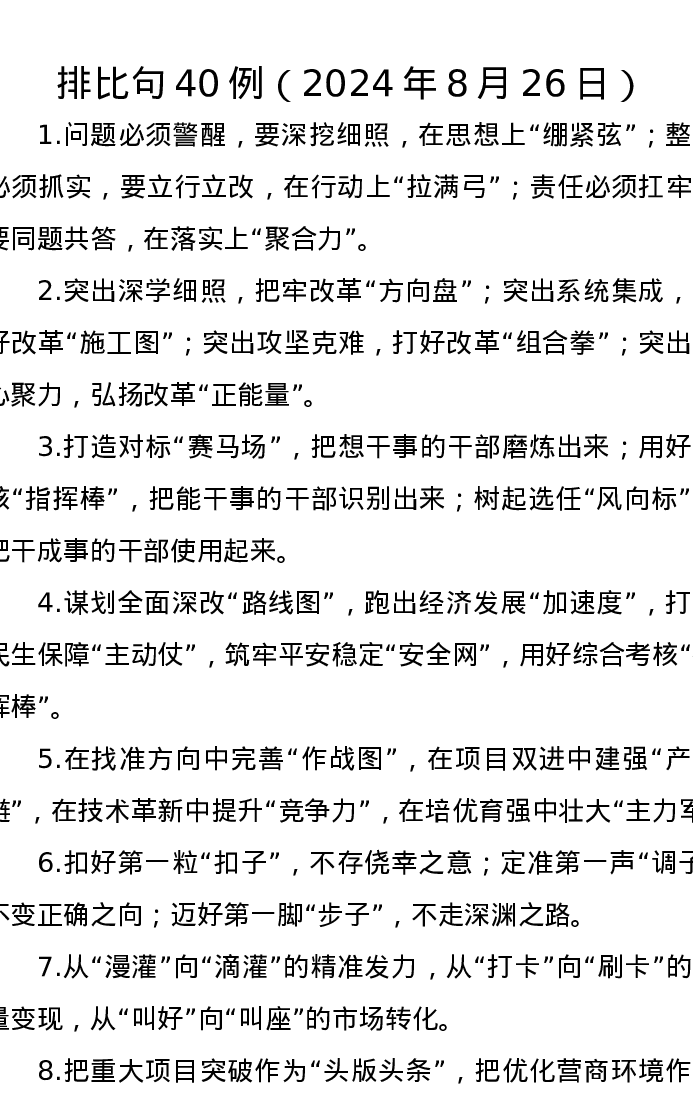 排比句40例(2024年8月26日)