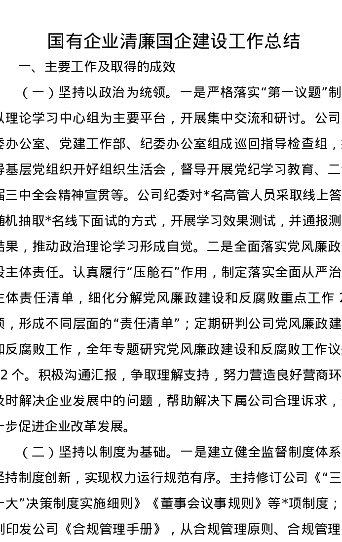 国有企业清廉国企建设工作总结