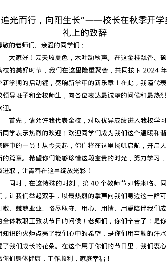 “追光而行,向阳生长”——校长在秋季开学典礼上的致辞