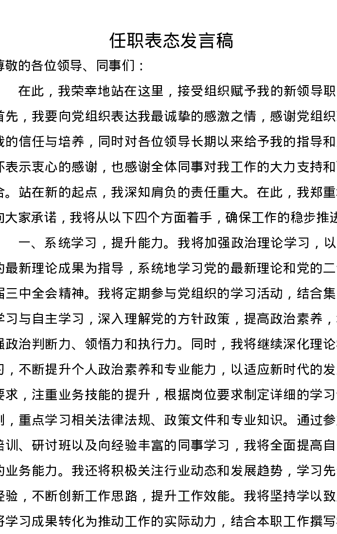 任职表态发言稿