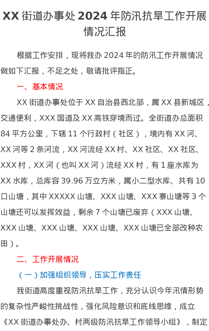 XX街道办事处2024年防汛抗旱工作开展情况汇报