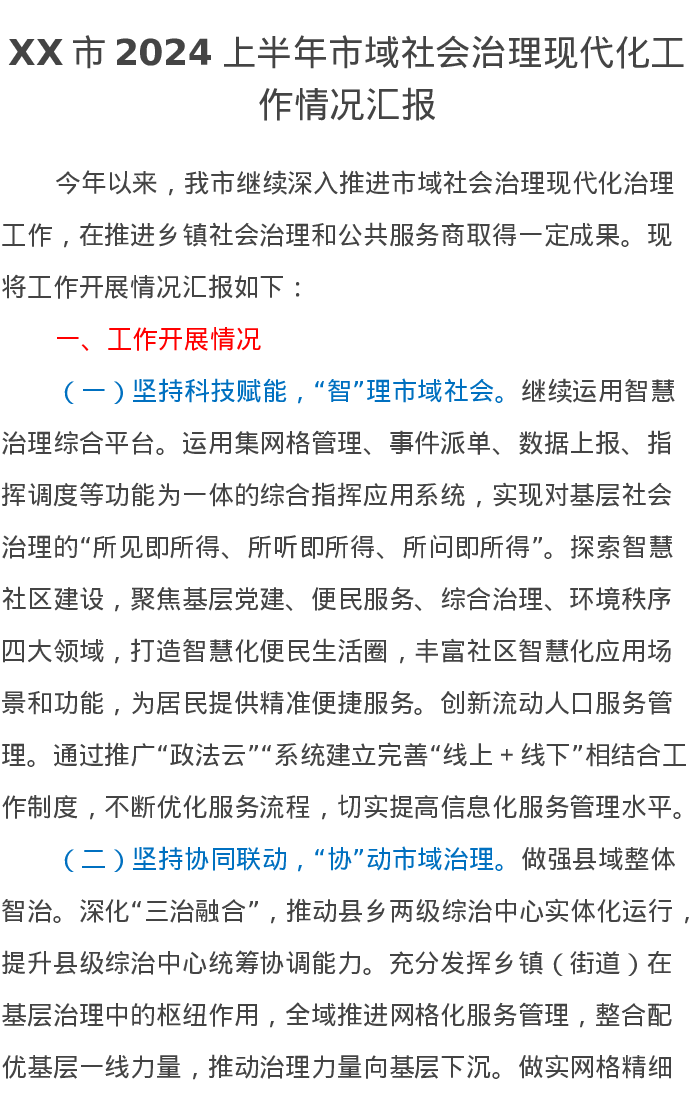 XX市2024上半年市域社会治理现代化工作情况汇报