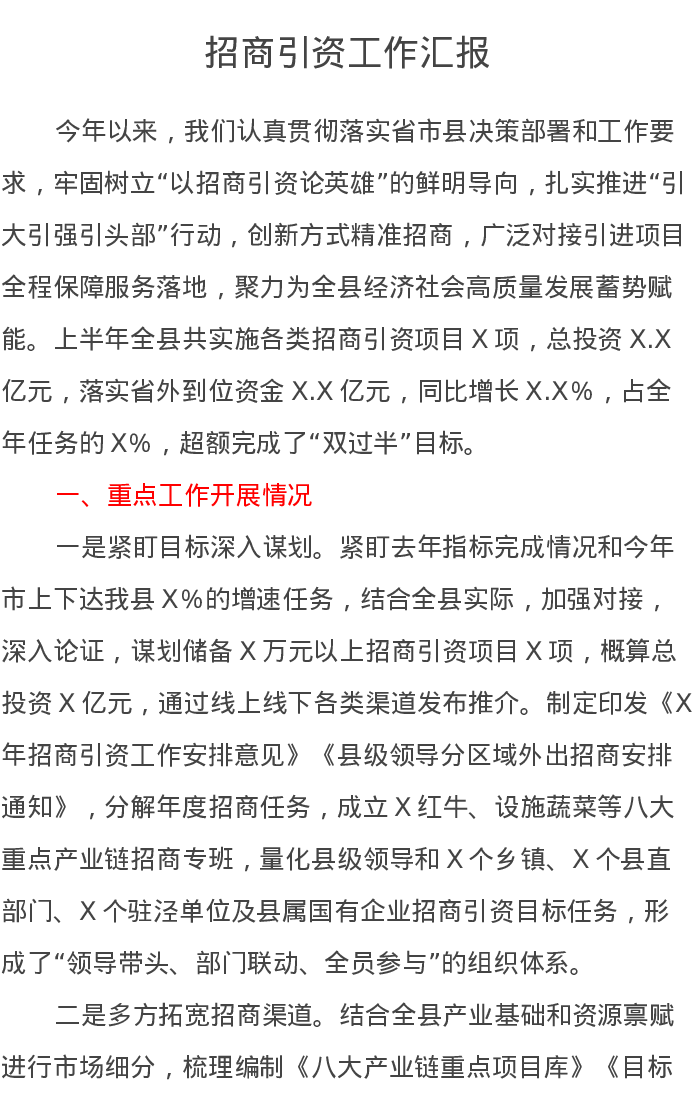 招商引资工作汇报