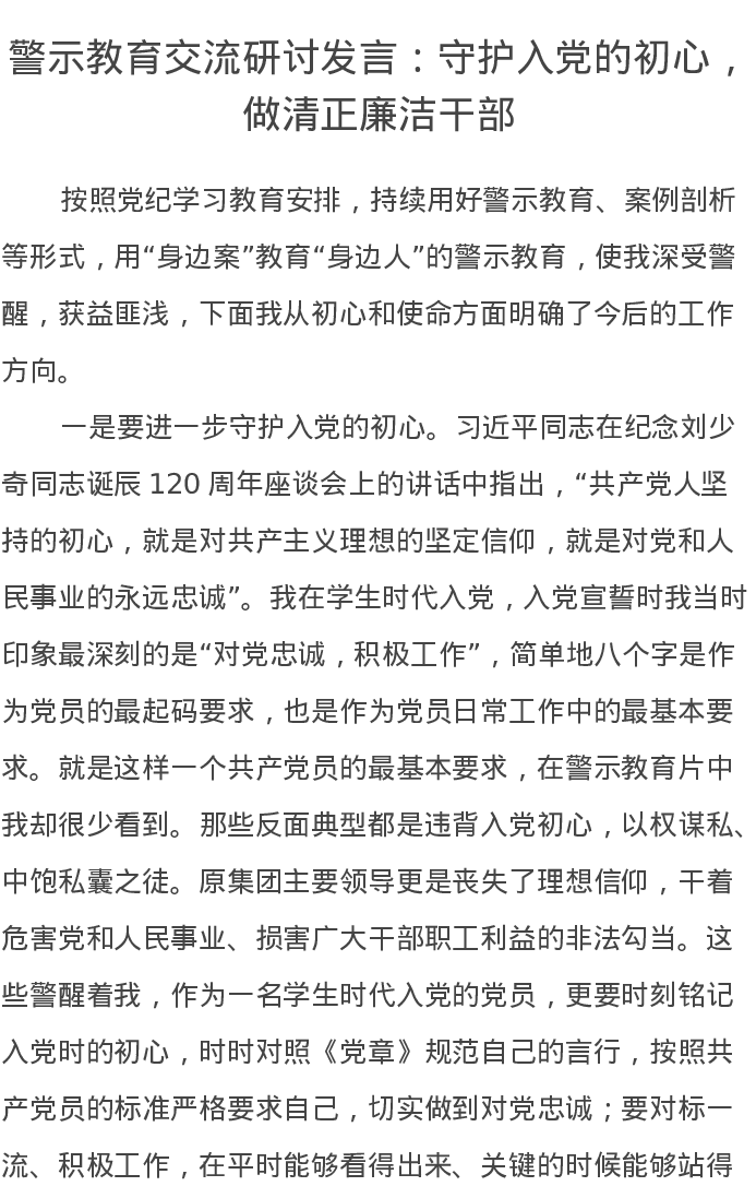 警示教育交流研讨发言:守护入党的初心,做清正廉洁干部