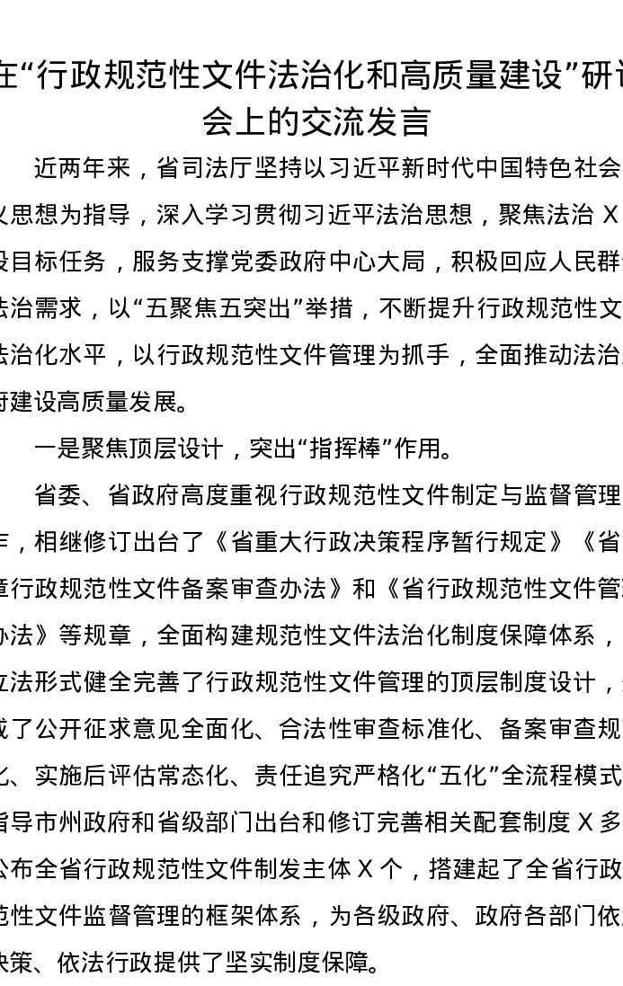 在“行政规范性文件法治化和高质量建设”研讨会上的交流发言