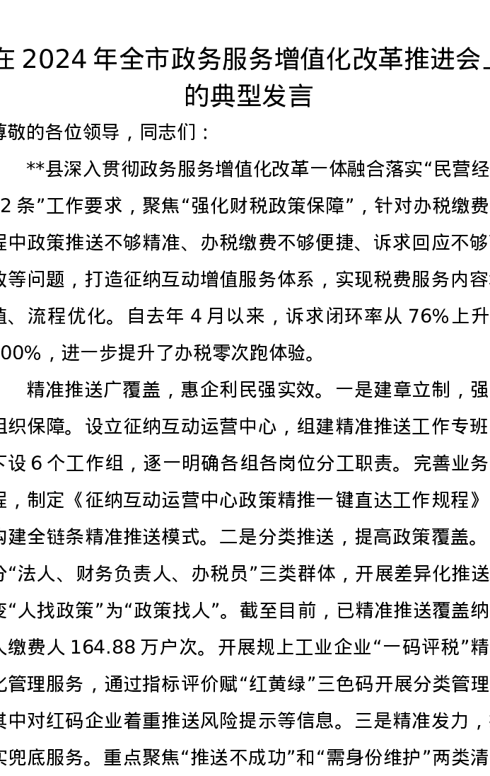 在2024年全市政务服务增值化改革推进会上的典型发言