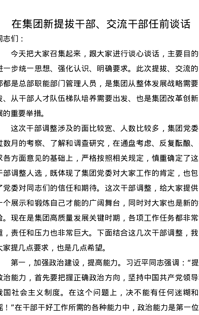 在集团新提拔干部、交流干部任前谈话