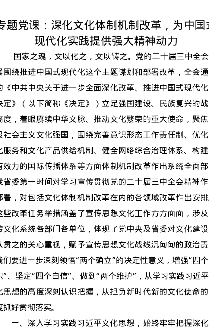党课讲稿:深化文化体制机制改革,为中国式现代化实践提供强大精神动力