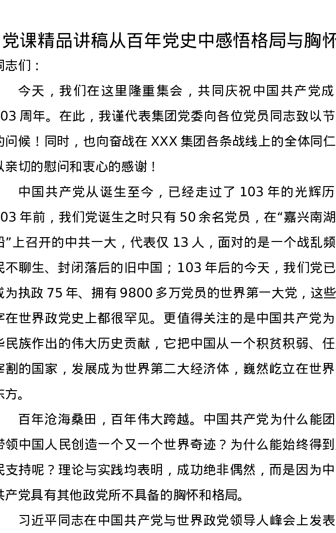 党课精品讲稿:从百年党史中感悟格局与胸怀