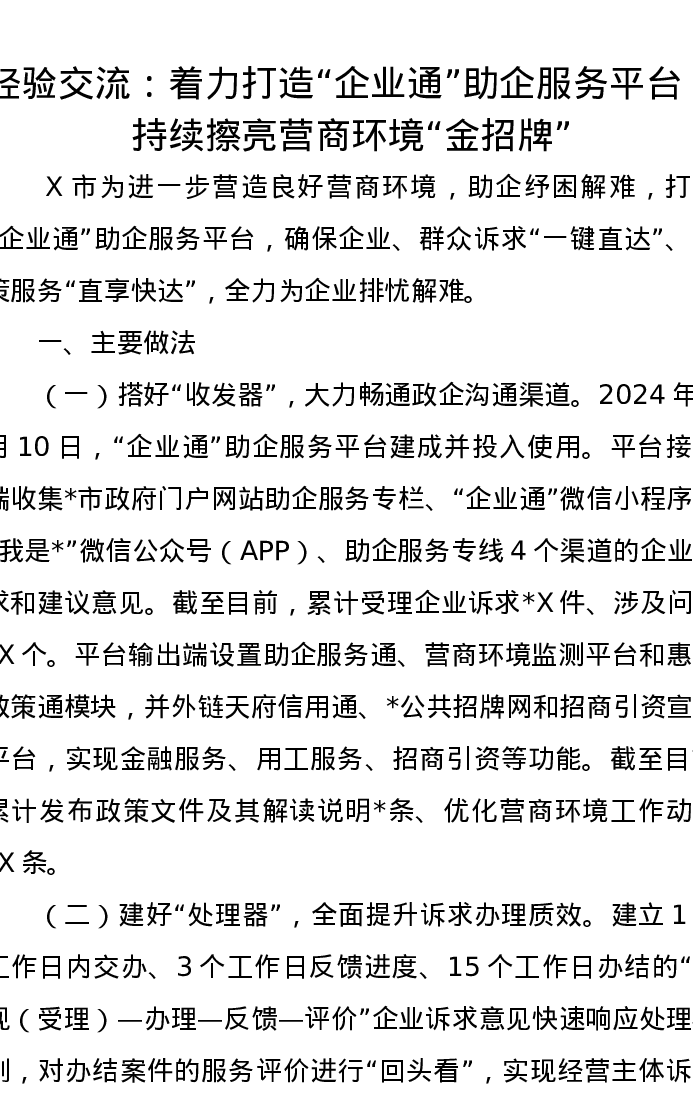 经验交流:着力打造“企业通”助企服务平台,持续擦亮营商环境“金招牌”