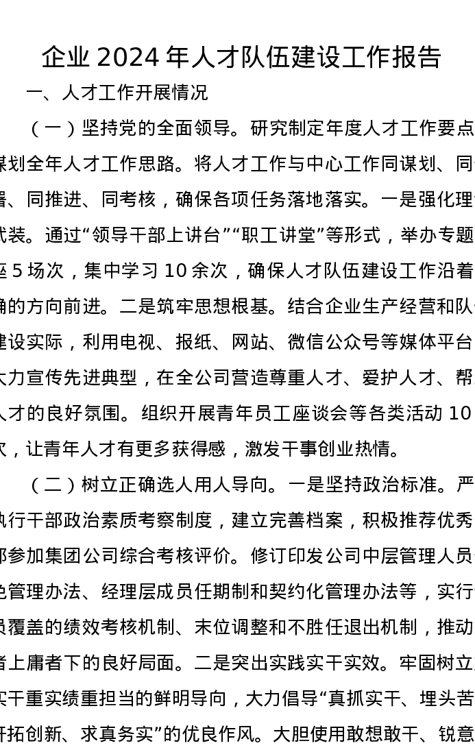企业2024年人才队伍建设工作报告