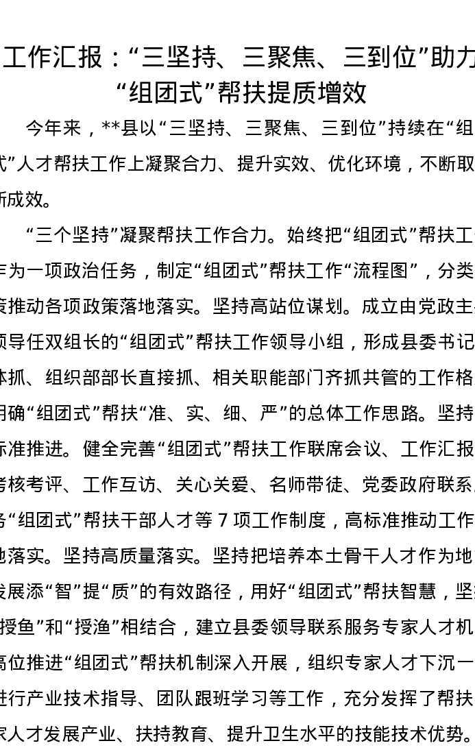 工作汇报:“三坚持、三聚焦、三到位”助力“组团式”帮扶提质增效