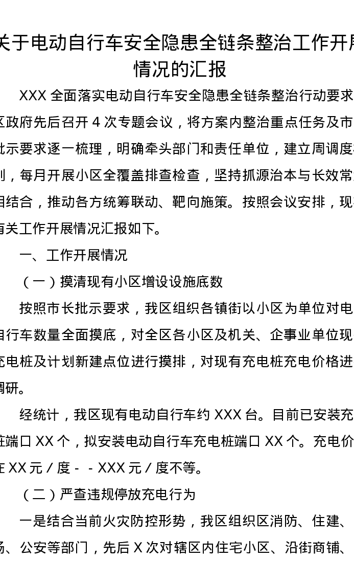 关于电动自行车安全隐患全链条整治工作开展情况的汇报