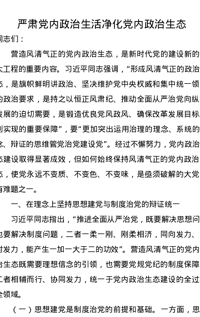 党课讲稿:严肃党内政治生活净化党内政治生态