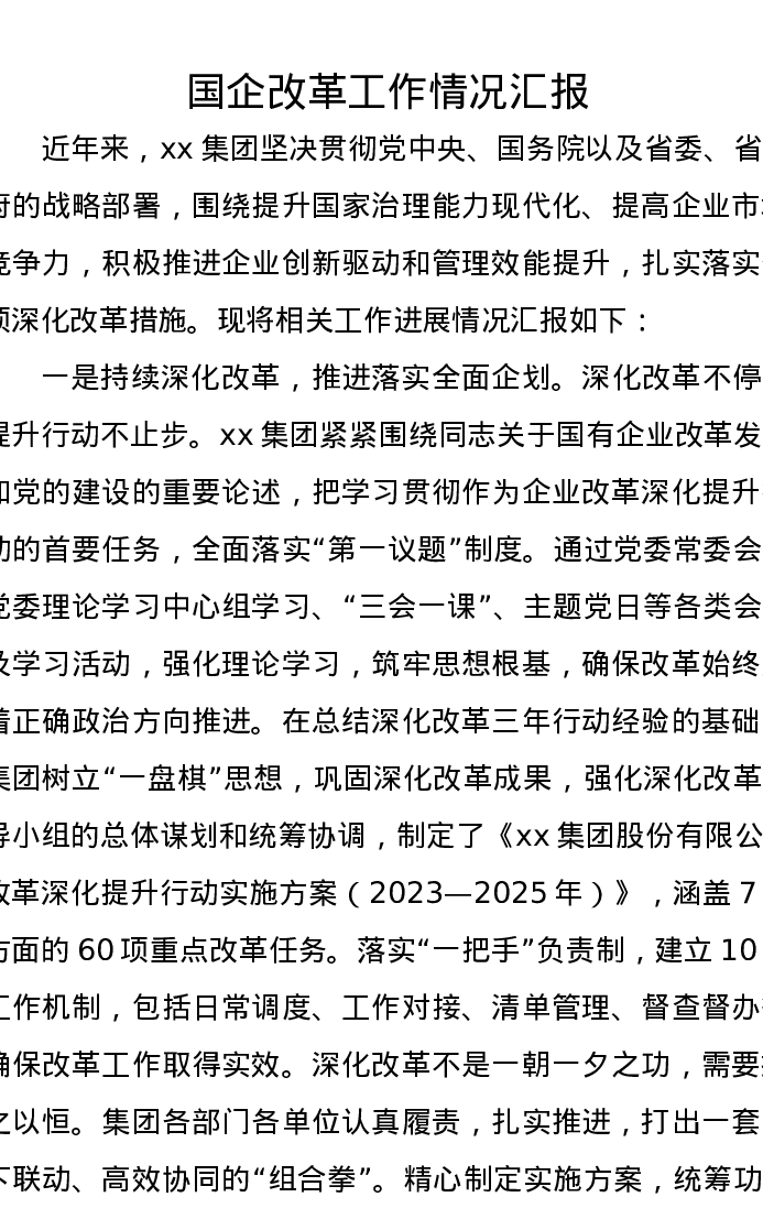 国企改革工作情况汇报