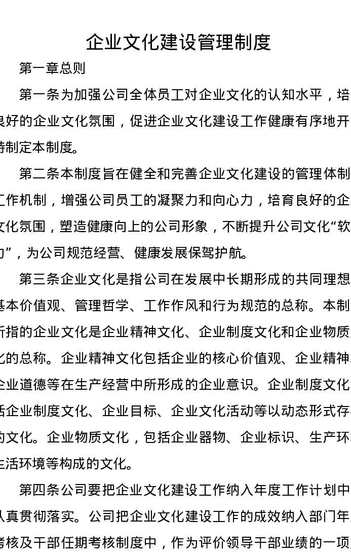 企业文化建设管理制度