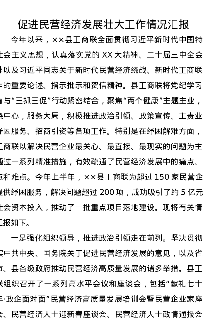 促进民营经济发展壮大工作情况汇报