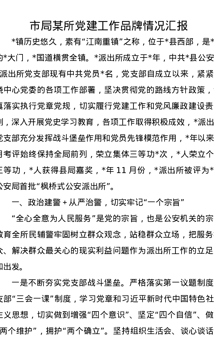市局某所党建工作品牌情况汇报