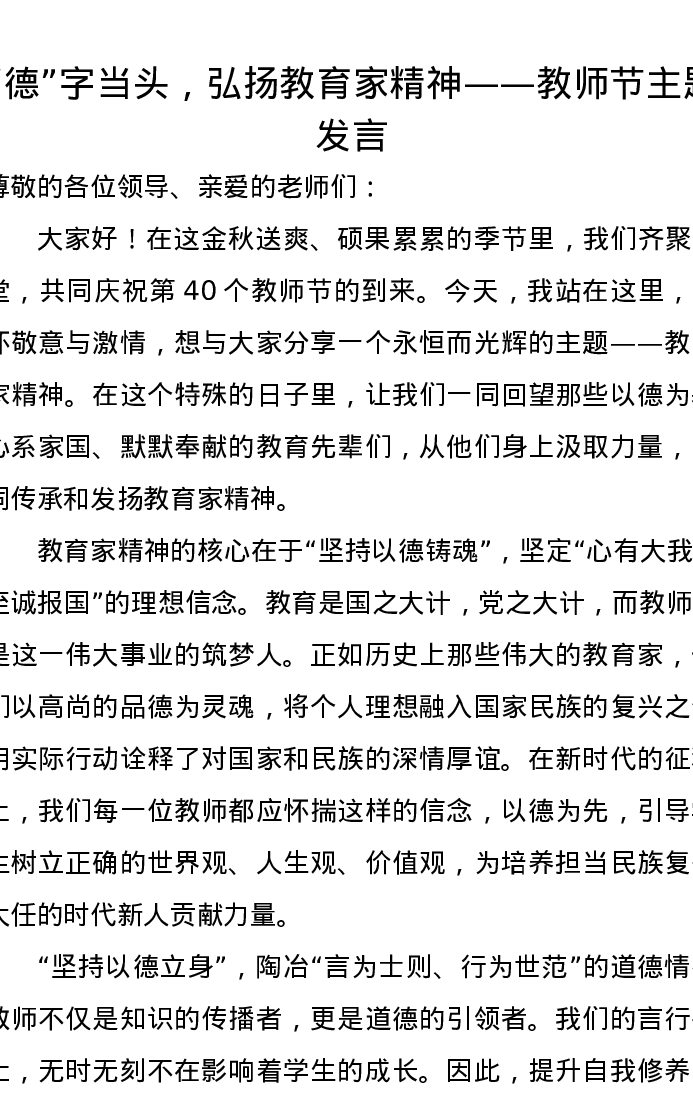 “德”字当头,弘扬教育家精神——教师节主题发言
