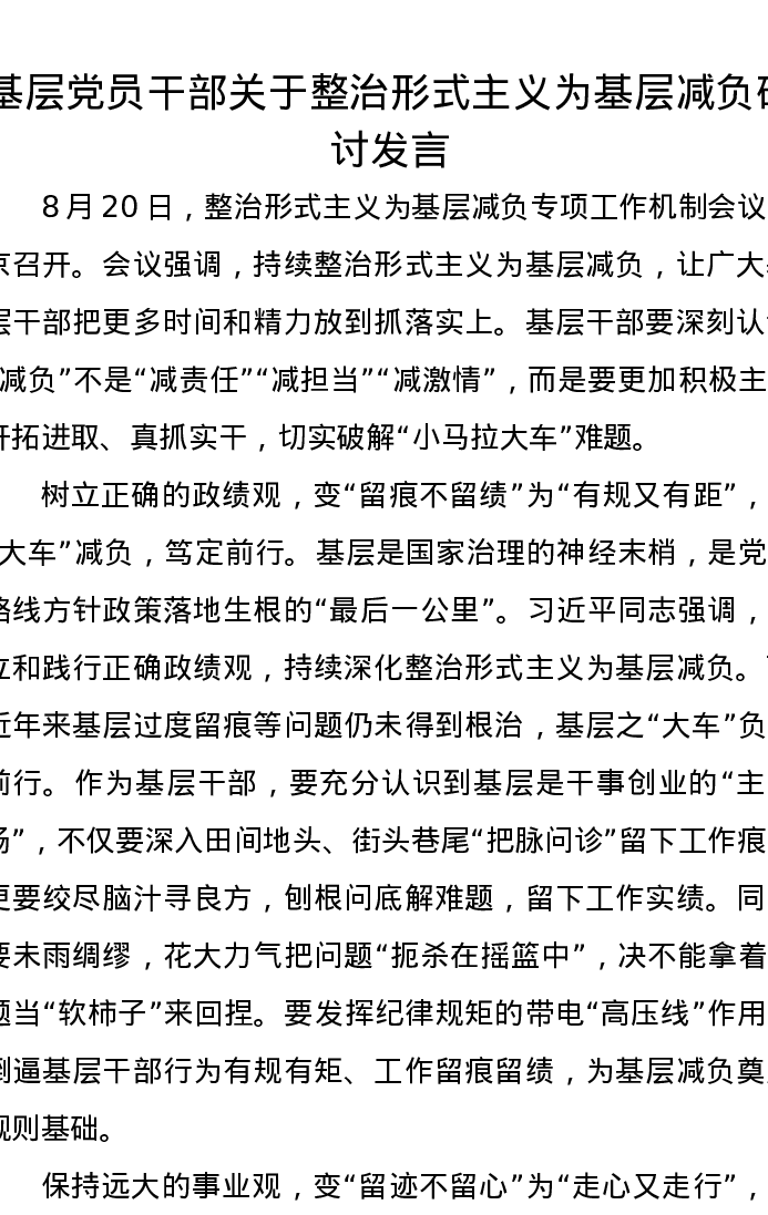 基层党员干部关于整治形式主义为基层减负研讨发言