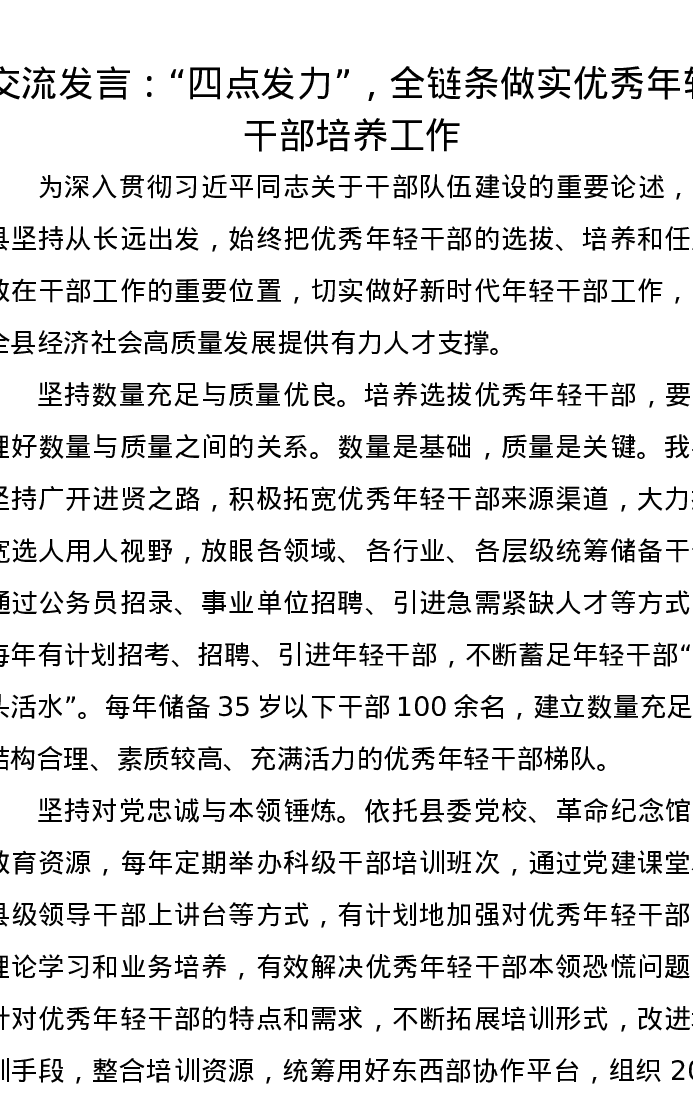 交流发言:“四点发力”,全链条做实优秀年轻干部培养工作