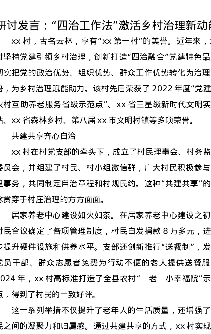 研讨发言:“四治工作法”激活乡村治理新动能